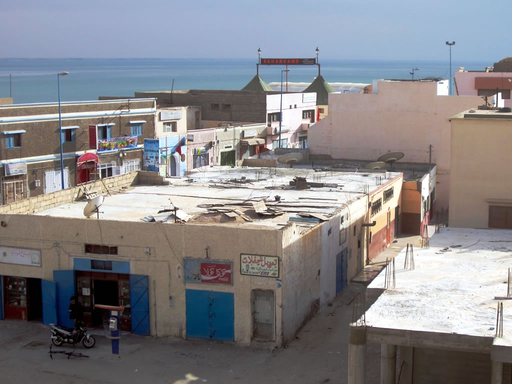 View of Dakhla, sea front and shops, Atlantic Coast, Western Sahara