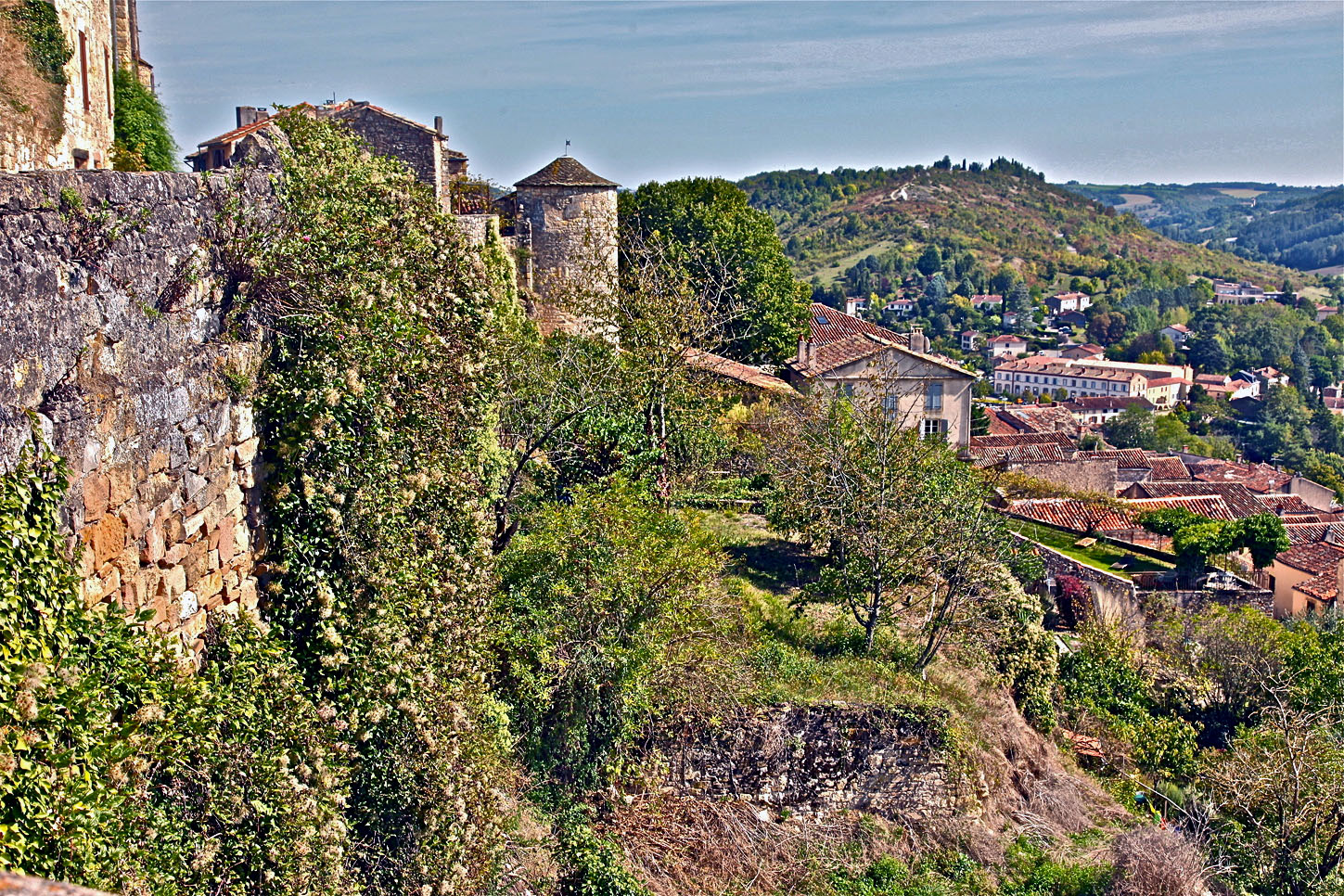 Les remparts de Cordes-sur-Ciel avec panorama sur les environs - Cordes-sur-Ciel, Tarn, Midi-Pyrénées, France