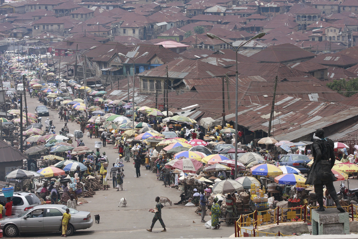 A market along the street downtown Ibadan, Oyo State, Nigeria