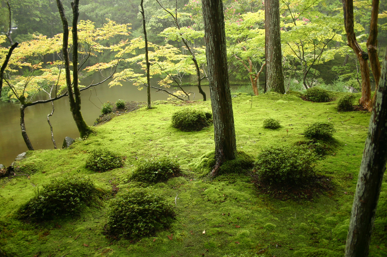 Moss garden, Saihouji (kokedera) pond, Saihō-ji (西芳寺) Rinzai Zen Buddhist temple located in Matsuo, Nishikyō Ward, Kyoto, Japan