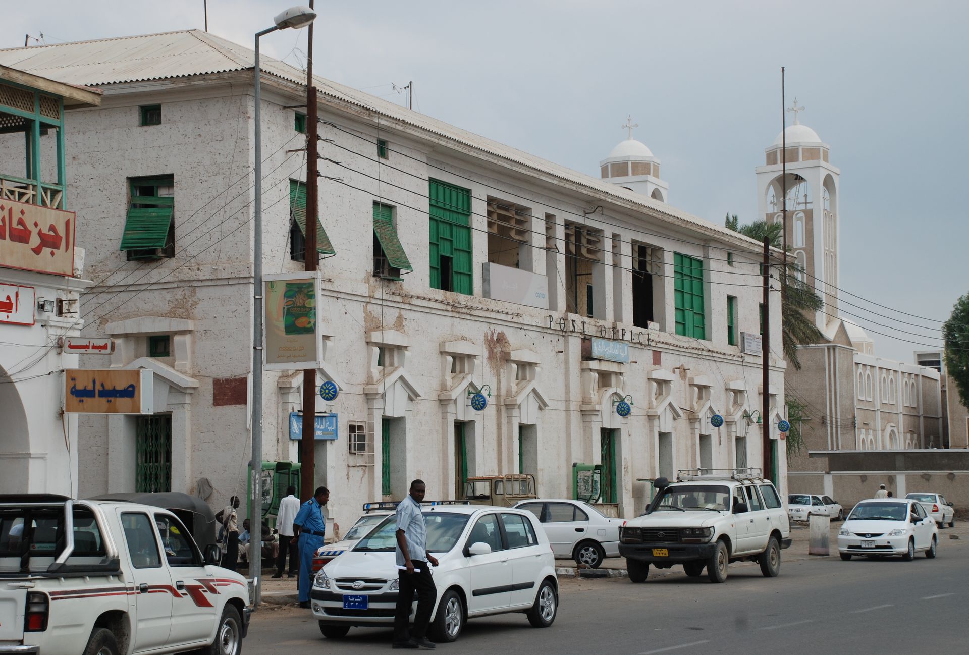 Colonial post office behind Coptic church downtown Port Sudan (Arabic: بُور سُودَان), Red Sea State, Sudan