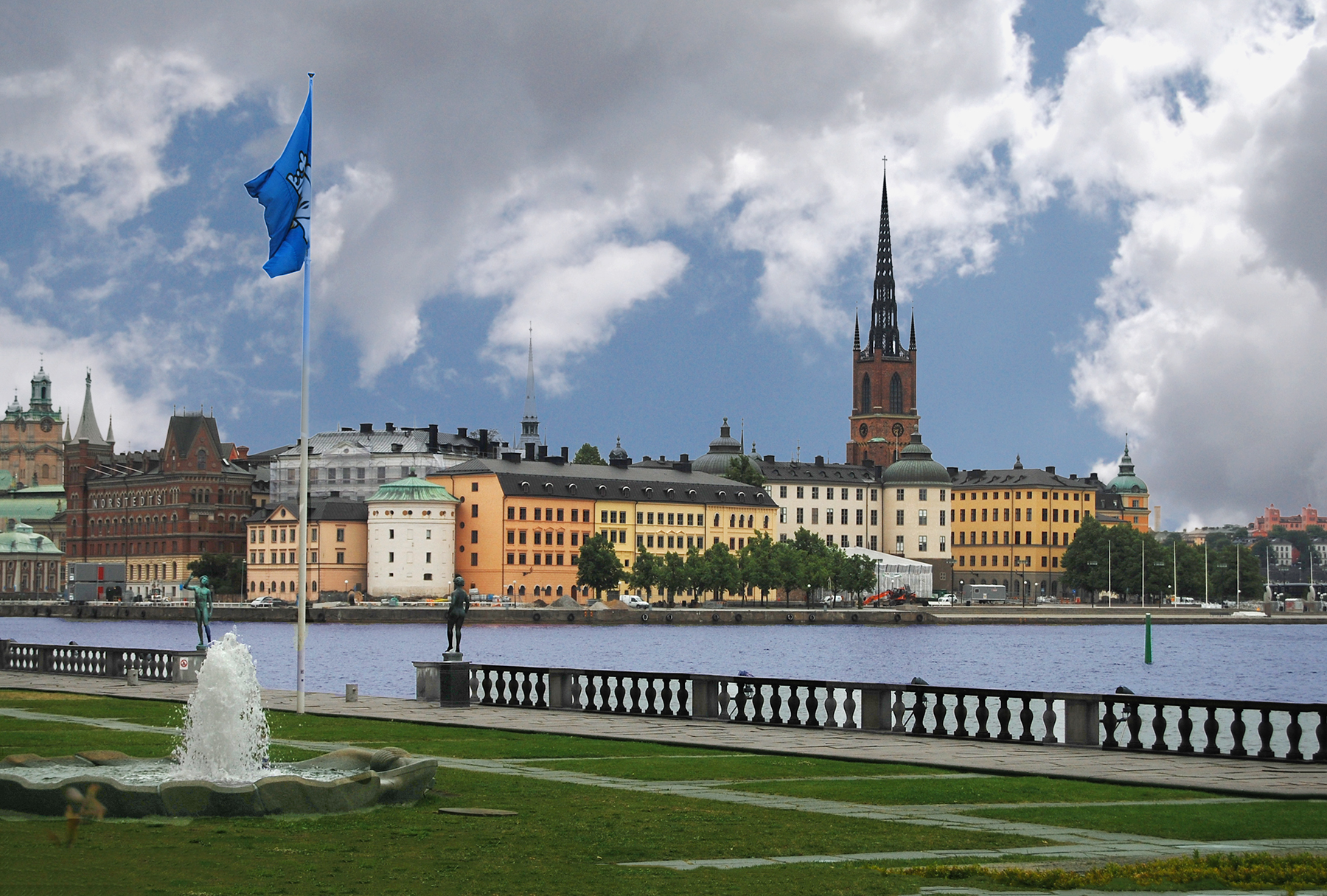 Vue du Gamla stan de Stockholm (vieille ville) depuis la cour de l'hôtel de ville.
