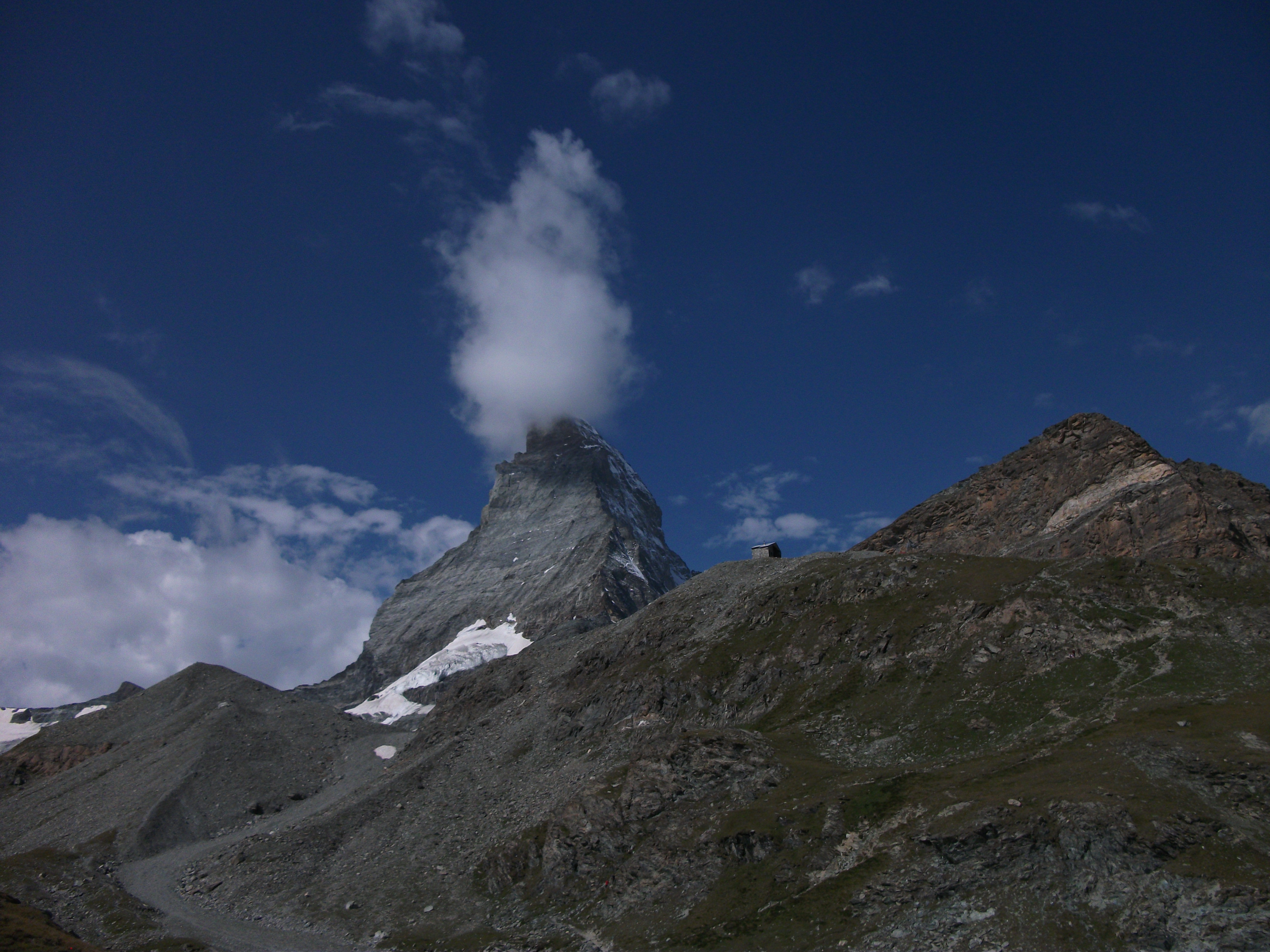 Matterhorn (French: Mont Cervin), the mountain. View during the trekking to 3200 mt of Horli-Hut. Valais, Pennine Alps, Switzerland.