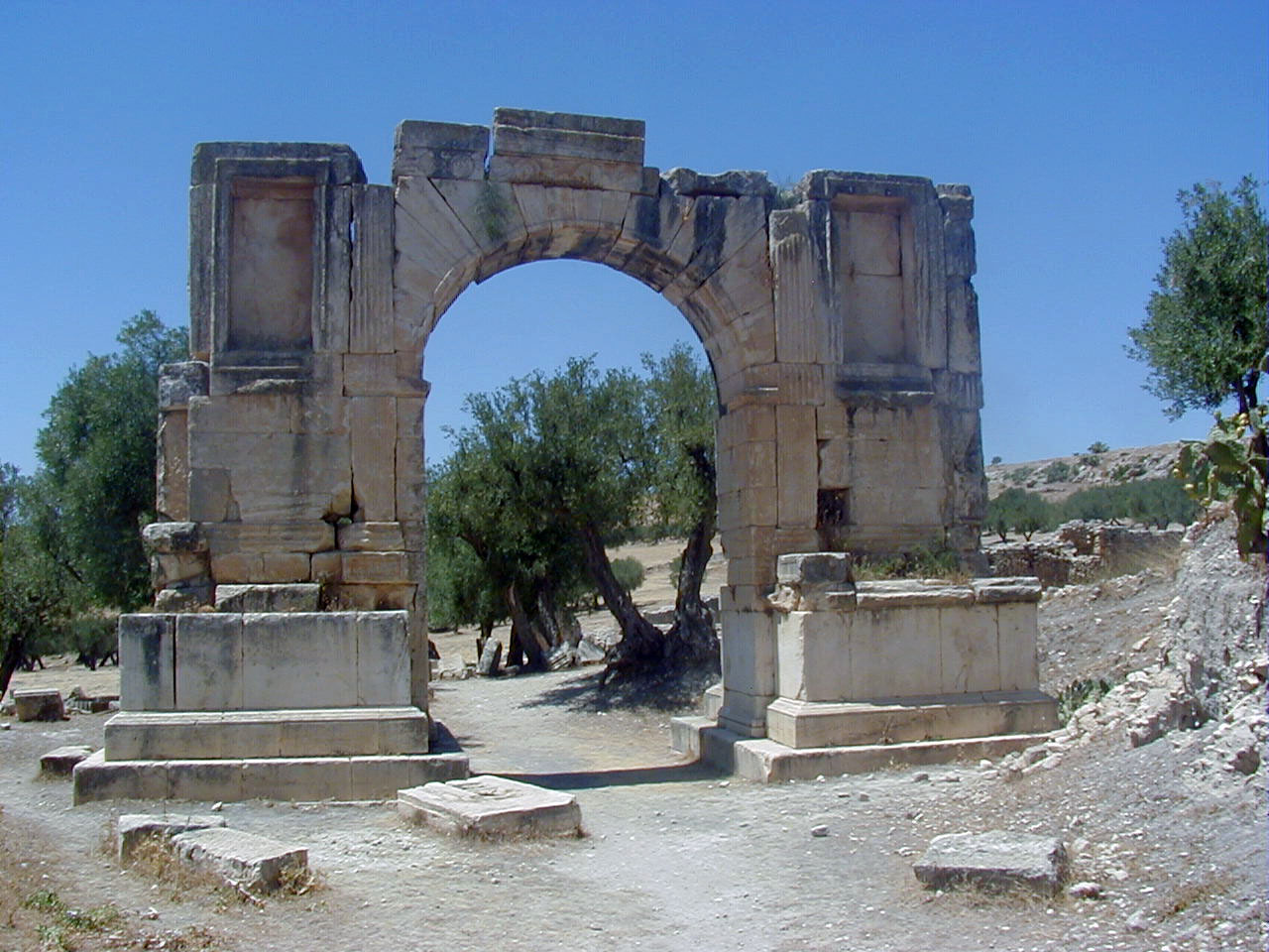 L'arc de Sévère Alexandre qui date de 222-235, site archéologique de Dougga/Thugga au nord de la Tunisie